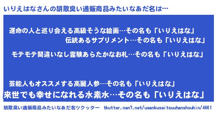| ヒーロー風カッコイイあだ名 | 『スーパーイリエハナ』『ネオイリエハナ』 |