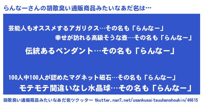 | ヘコむあだ名 | 『らんぷりん』『らんにゅー』『豆乳』 |
