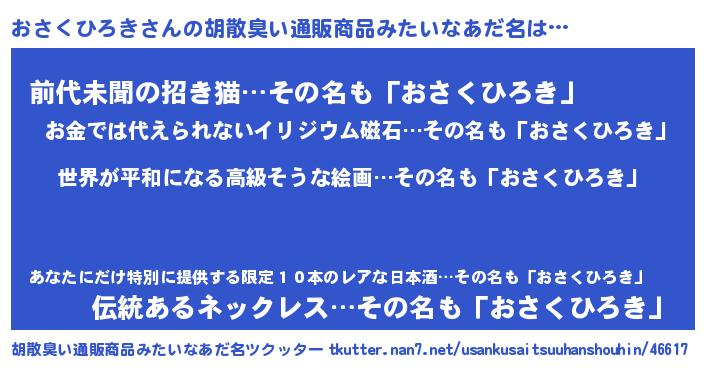 | 意味不明あだ名 | 『おさくひろきフォーエバー』 |