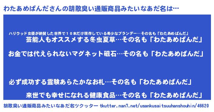 | ヘコむあだ名 | 『わたあめぱんだ(小並感)』『わたっふぃ~』 |