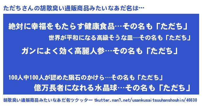 | 意味不明あだ名 | 『自称ただち』『永久保存ただち』 |