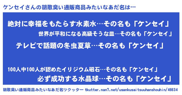 | ヒーロー風カッコイイあだ名 | 『最強戦士ケンセイ』『ネオケンセイ』 |