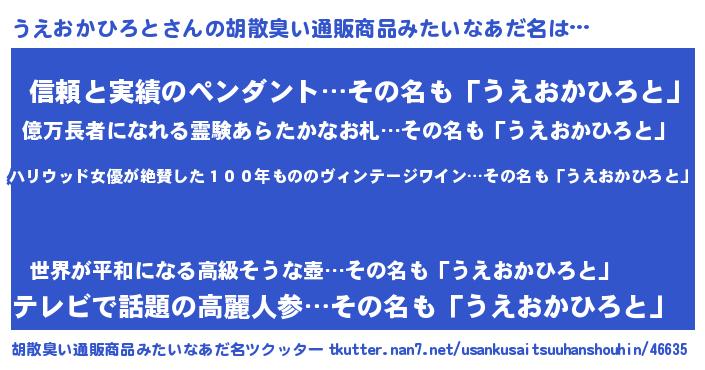 | 意味不明あだ名 | 『住所不定無職うえおかひろと(11歳)』 |