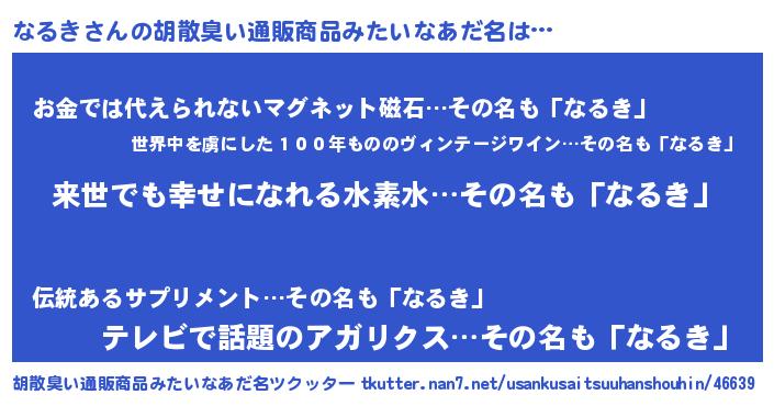 | 意味不明あだ名 | 『永久保存なるき』『自称なるき』 |