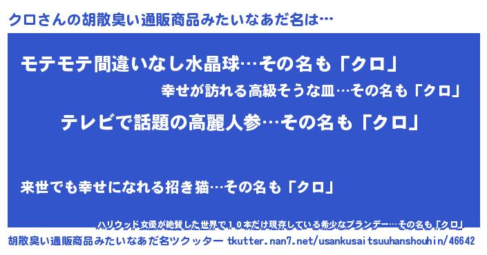 | 恥ずかしいあだ名 | 『クロデラックス』『プリティークロ』 |