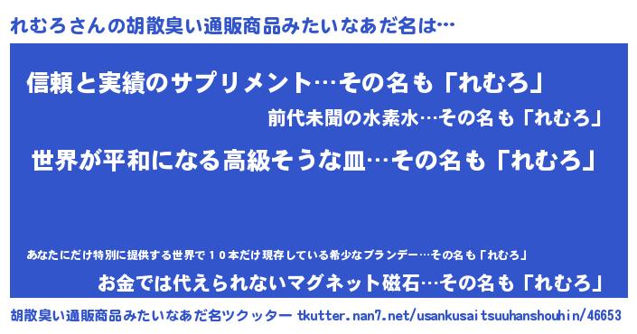 | ヘコむあだ名 | 『豆乳』『れむを』『れむろ(小並感)』 |