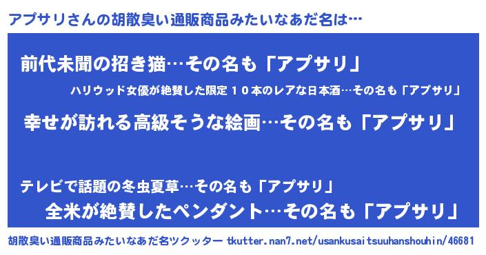 | 男性向けラノベタイトル風あだ名 | 『やはりアプサリの青春ラブコメはまちがっている 』 |