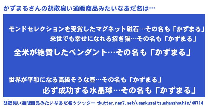 | 意味不明あだ名 | 『とにかく怪しいかずまる』 |