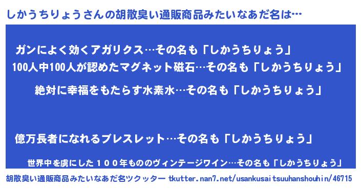 しかうちりょうさんの胡散臭い通販商品みたいなあだ名をツクッター!