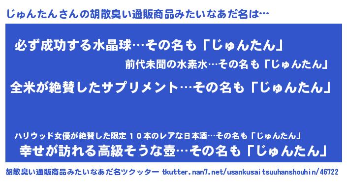 | 男性向けラノベタイトル風あだ名 | 『じゅんたんの嫁は女の子じゃないと思った?』 |