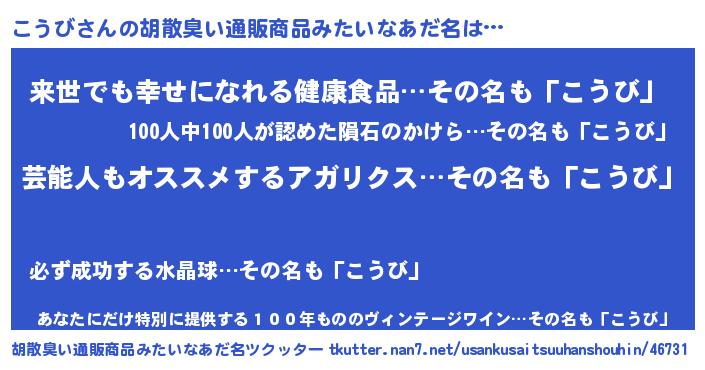 | ヘコむあだ名 | 『こうび(笑)』『こうにゅー』 |