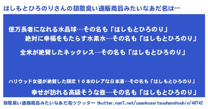 | 意味不明あだ名 | 『とにかく怪しいはしもとひろのり』 |