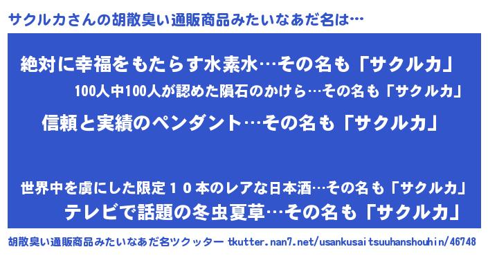 | ヘコむあだ名 | 『サクぷりん』『サクルカ(震え声)』 |