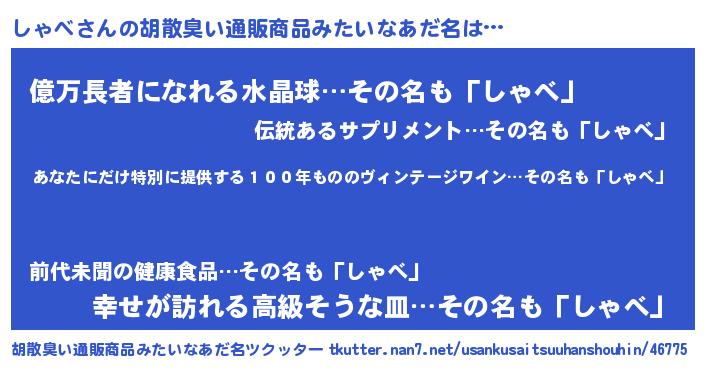 | 意味不明あだ名 | 『住所不定無職しゃべ(4歳)』 |