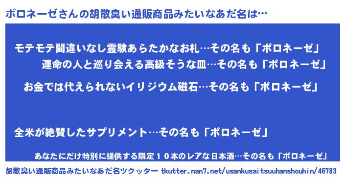 | ヒーロー風カッコイイあだ名 | 『愛の使者ボロネーゼ』『仮面ボロダー』 |