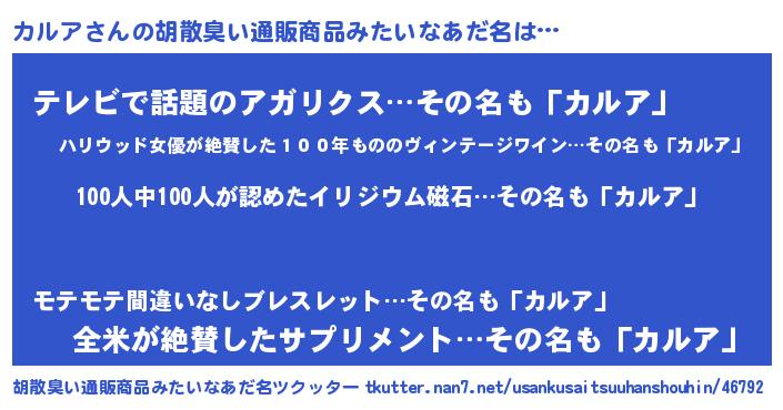 | 男性向けラノベタイトル風あだ名 | 『緋弾のカルア』『魔法科高校のカルア』 |