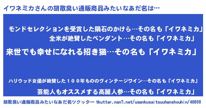 | ヘコむあだ名 | 『イワネミカ(笑)』『イワっちょ』 |