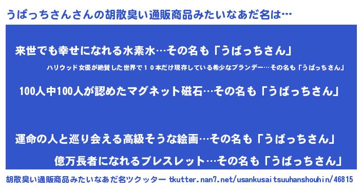| ヘコむあだ名 | 『うばっちさん(小並感)』『うばもー』 |