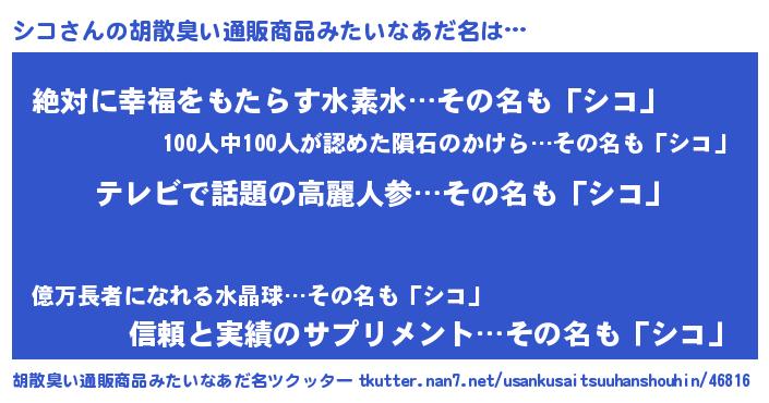 シコさんの胡散臭い通販商品みたいなあだ名をツクッター!