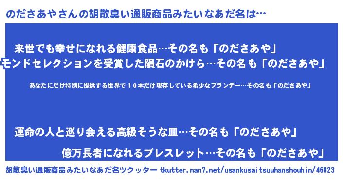 | 男性向けラノベタイトル風あだ名 | 『この素晴らしい世界にのださあやを!』 |