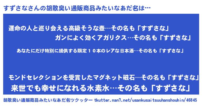 | ヘコむあだ名 | 『酢こんぶ』『すずさな(笑)』 |