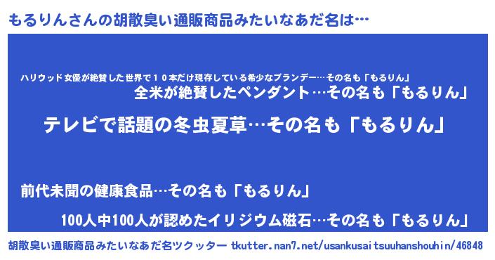 | 意味不明あだ名 | 『自称もるりん』『しいたけ科もるりん属』 |
