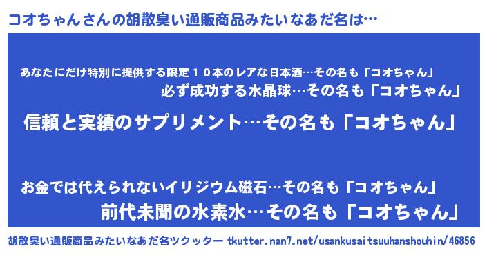 | 意味不明あだ名 | 『とにかく怪しいコオちゃん』 |