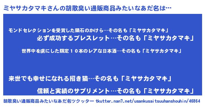 | 男性向けラノベタイトル風あだ名 | 『この素晴らしい世界にミヤサカタマキを!』 |