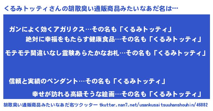 | ヒーロー風カッコイイあだ名 | 『スーパークルミトッティ』 |