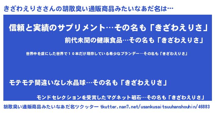 | 意味不明あだ名 | 『住所不定無職きざわえりさ(74歳)』 |