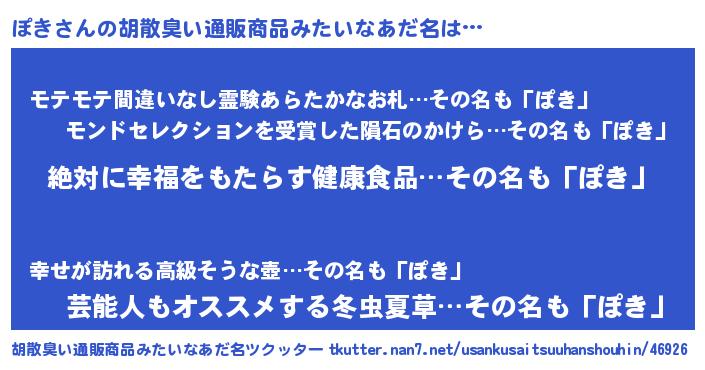 | ヘコむあだ名 | 『ぽき(笑)』『ぽきっふぃ~』 |
