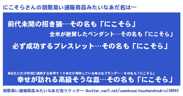 | 男性向けラノベタイトル風あだ名 | 『にこそらの憂鬱』 |