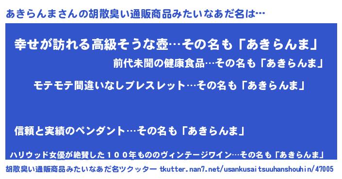 | ヘコむあだ名 | 『あきにー』『レバニラ』『あきお』 |