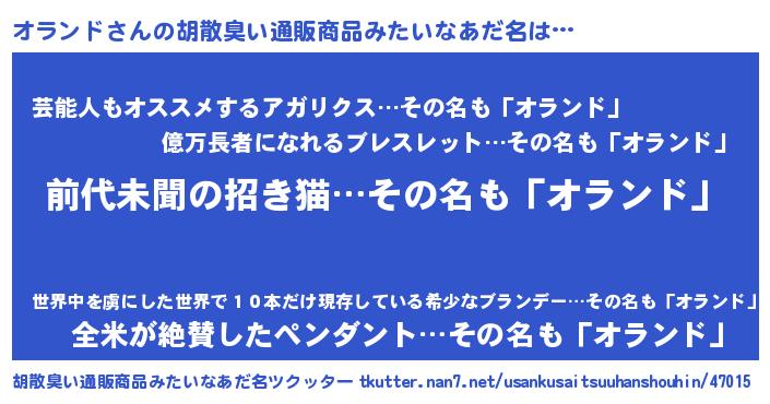| 意味不明あだ名 | 『永久保存オランド』『自称オランド』 |