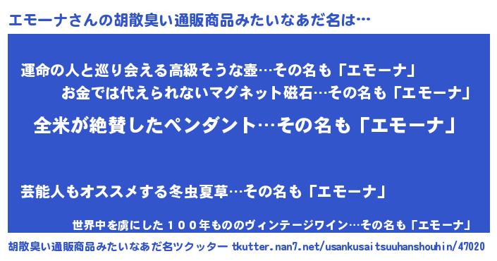 | 意味不明あだ名 | 『とにかく怪しいエモーナ』 |