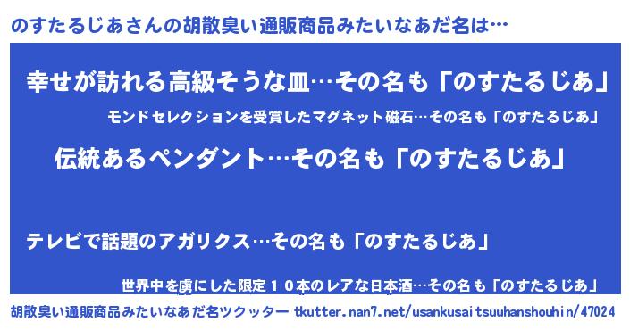 | 意味不明あだ名 | 『とにかく怪しいのすたるじあ』 |