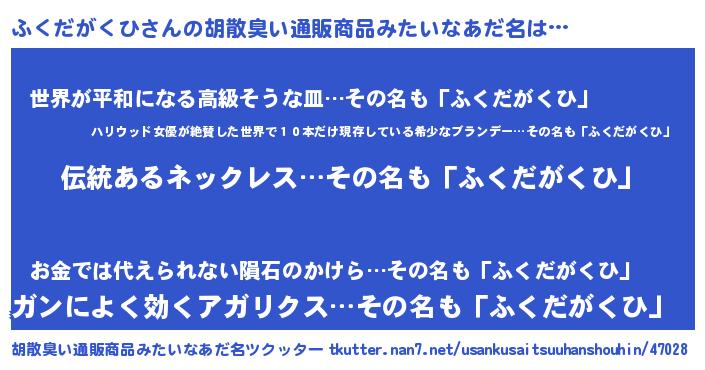 | ポケモン風あだ名 | 『ヒフクダガクヒ』『フクダダネ』 |