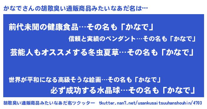 | 意味不明あだ名 | 『自称かなで』『永久保存かなで』 |