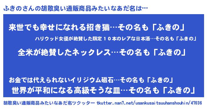 | 意味不明あだ名 | 『とにかく怪しいふきの』 |