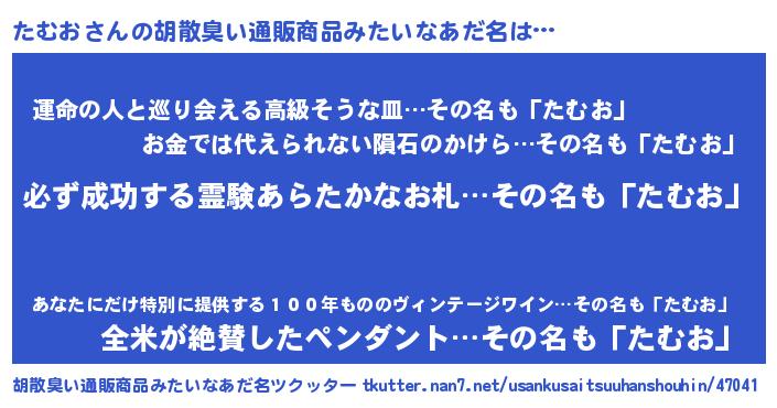 | 意味不明あだ名 | 『ペロリンたむお』『エリンギ科たむお属』 |