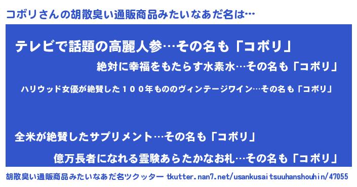 | ヒーロー風カッコイイあだ名 | 『仮面コボダー』『最強戦士コボリ』 |
