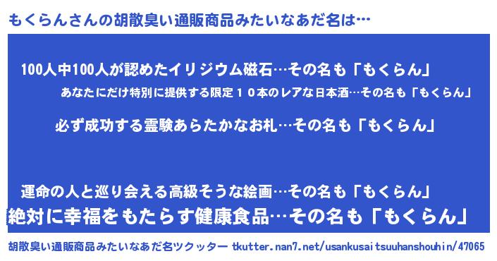 | 意味不明あだ名 | 『ペロリンもくらん』『永久保存もくらん』 |