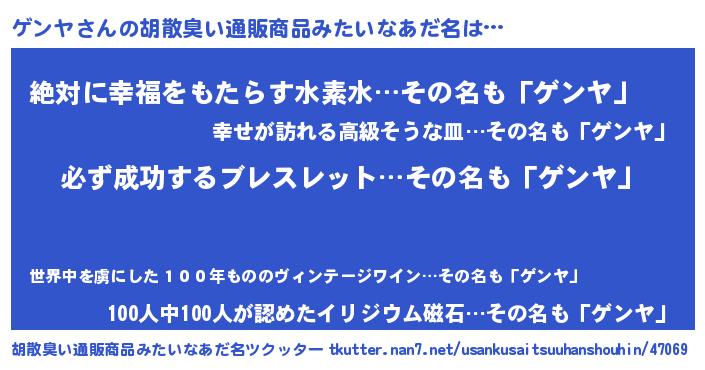 | ヘコむあだ名 | 『ゲンにー』『ゲンヤ(小並感)』 |