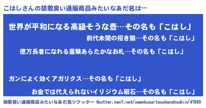 | 男性向けラノベタイトル風あだ名 | 『コハシアートオンライン』 |