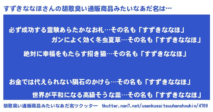 | ヘコむあだ名 | 『すずきななほ(笑)』『すずにー』 |