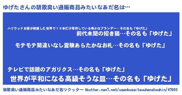 | 意味不明あだ名 | 『ペロリンゆげた』『ゆげたフォーエバー』 |