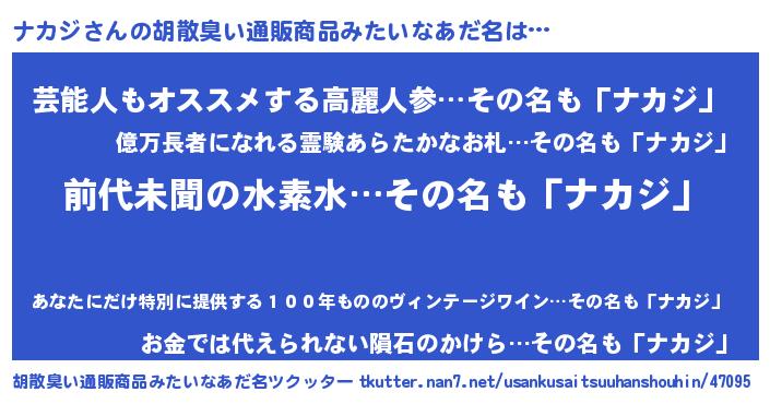 | 意味不明あだ名 | 『永久保存ナカジ』『自称ナカジ』 |