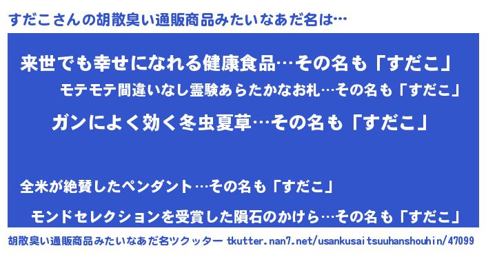 | 意味不明あだ名 | 『自称すだこ』『永久保存すだこ』 |