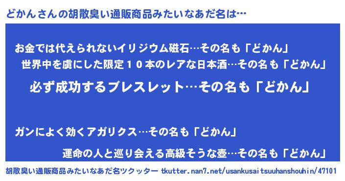| 男性向けラノベタイトル風あだ名 | 『どかんの憂鬱』『魔弾の王とどかん』 |