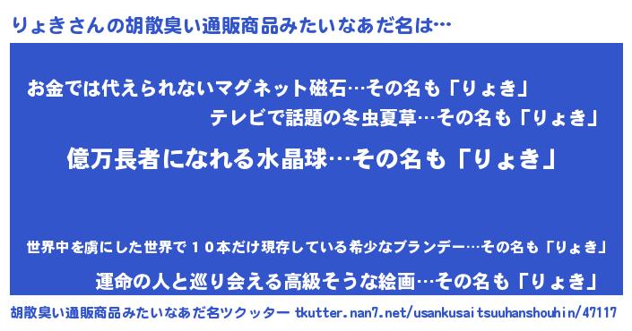 | 男性向けラノベタイトル風あだ名 | 『リョキアートオンライン』 |